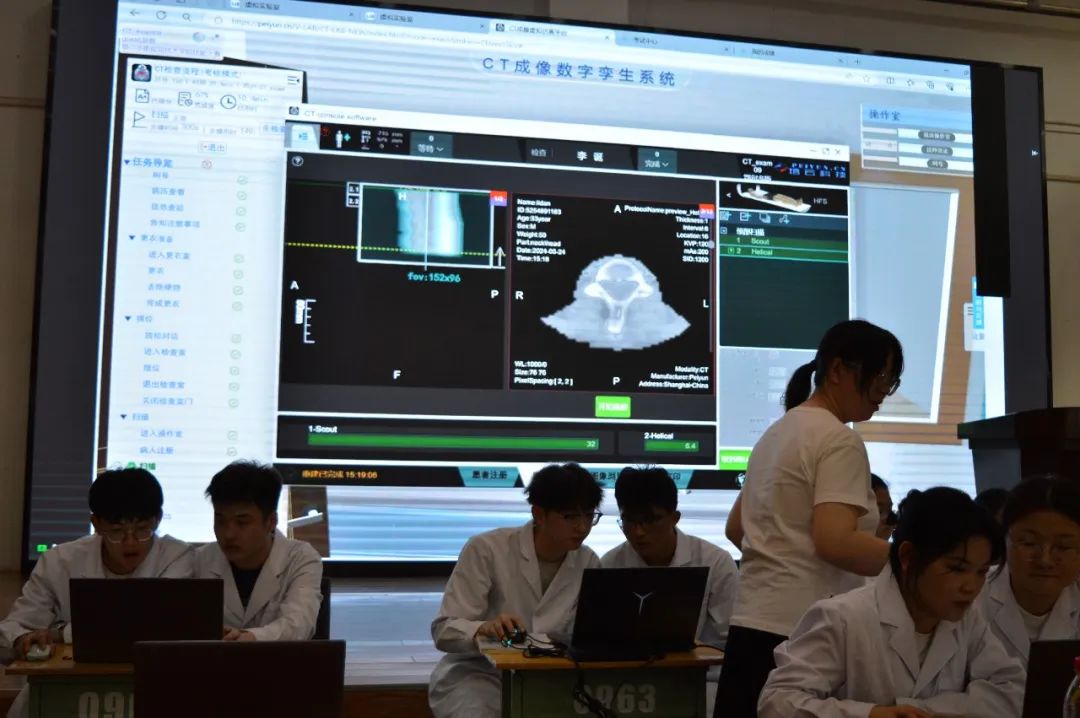 鄂尔多应用技术学院医学系影像教研室于2024年5月24日下午举办了第一届影像技能比赛,参赛的成员为2021级影像技术专业学生,共11组,每组4人。比赛主要包括两项,第一项PACS系统操作,第二项为CT成像数字孪生系统操作。比赛由影像教研室主任李素和主持,教研室全体老师参与。其中CT成像数字孪生系统由培云科技提供支持。