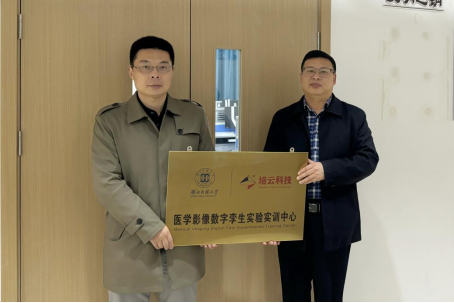 2024年11月28日下午,聊城大学医学院与培云科技于东校实训楼举行智能影像数字孪生实验实训中心揭牌仪式。医学院党委书记明辉,党委副书记、副院长王炜明,院长助理杨茜茜、孟震等相关教师、上海培云教育科技有限公司执行经理夏天、市场部经理汪珊珊及2023、2024级部分学子参加,医学院影像教研室主任孙宗博主持仪式,会议同时邀请了聊城市人民医院磁共振室主任张传臣,聊城市人民医院东昌府院区副院长李森,影像中心主任马勇,影像中心副主任白敏、孙晓楠莅临交流指导。