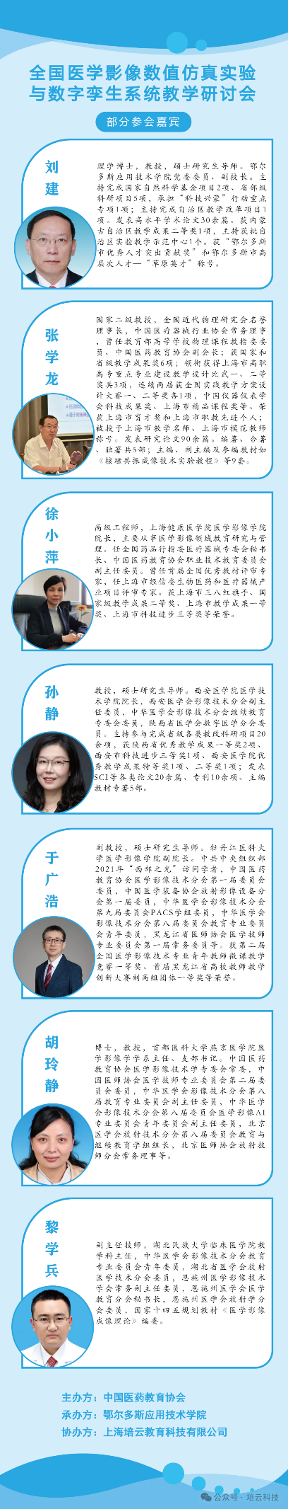 开设医学影像技术、生物医学工程、医学影像学、智能医学工程、智能影像工程、智能医疗装备技术等专业的高校学院(系)负责人、专业与课程负责人、行业专家等